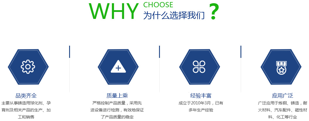 1、化學(xué)成份均勻,質(zhì)量偏差小,可控制在目標(biāo)值±0.2%范圍以?xún)?nèi),球化能力很好。 2、...